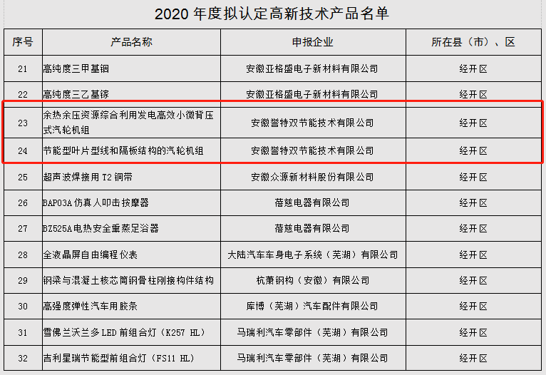 2021年1月11日,安徽省高新技術(shù)產(chǎn)品認(rèn)定名單正式公布。我公司產(chǎn)品“余熱余壓資源綜合利用發(fā)電高效小微背壓式汽輪機(jī)組、節(jié)能型葉片型線和隔板結(jié)構(gòu)的汽輪機(jī)組”兩項(xiàng)產(chǎn)品喜獲認(rèn)定,這次獲得高新技術(shù)產(chǎn)品認(rèn)定再一次驗(yàn)證了安徽譽(yù)特雙的卓越品質(zhì),同時(shí)也是對我司產(chǎn)品權(quán)威的肯定!